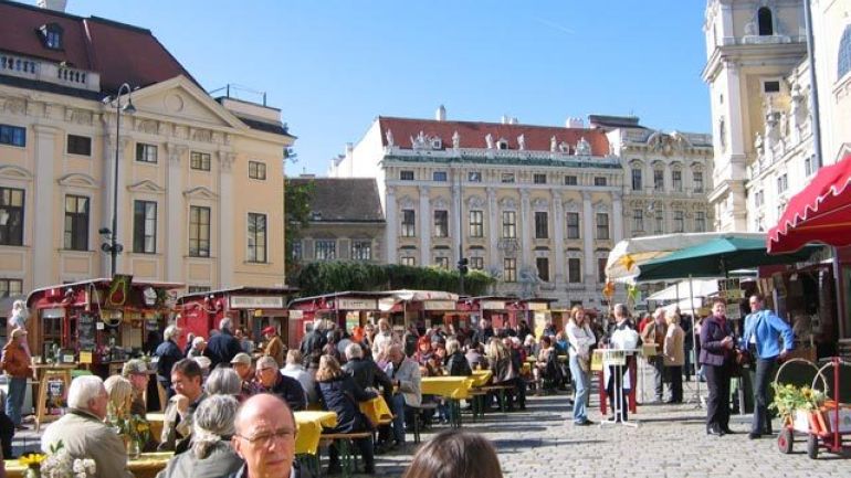 Das Bio-Herz der Wiener Märkte findet sich auf der Freyung: der Freyung-Biomarkt. Rund 20 Marktstände bieten ihre Bio-Lebensmittel an.