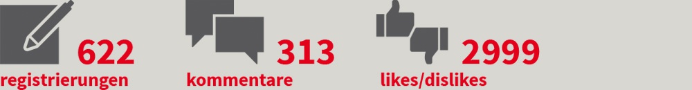 Der in den Arbeitsgruppen ausgearbeitete Strategietext wurde der Community über die Online-Partizipationsplattform zur Verfügung gestellt. Die Bevölkerung war aufgerufen auf Absatzebene zu bewerten und Kommentare zu posten.