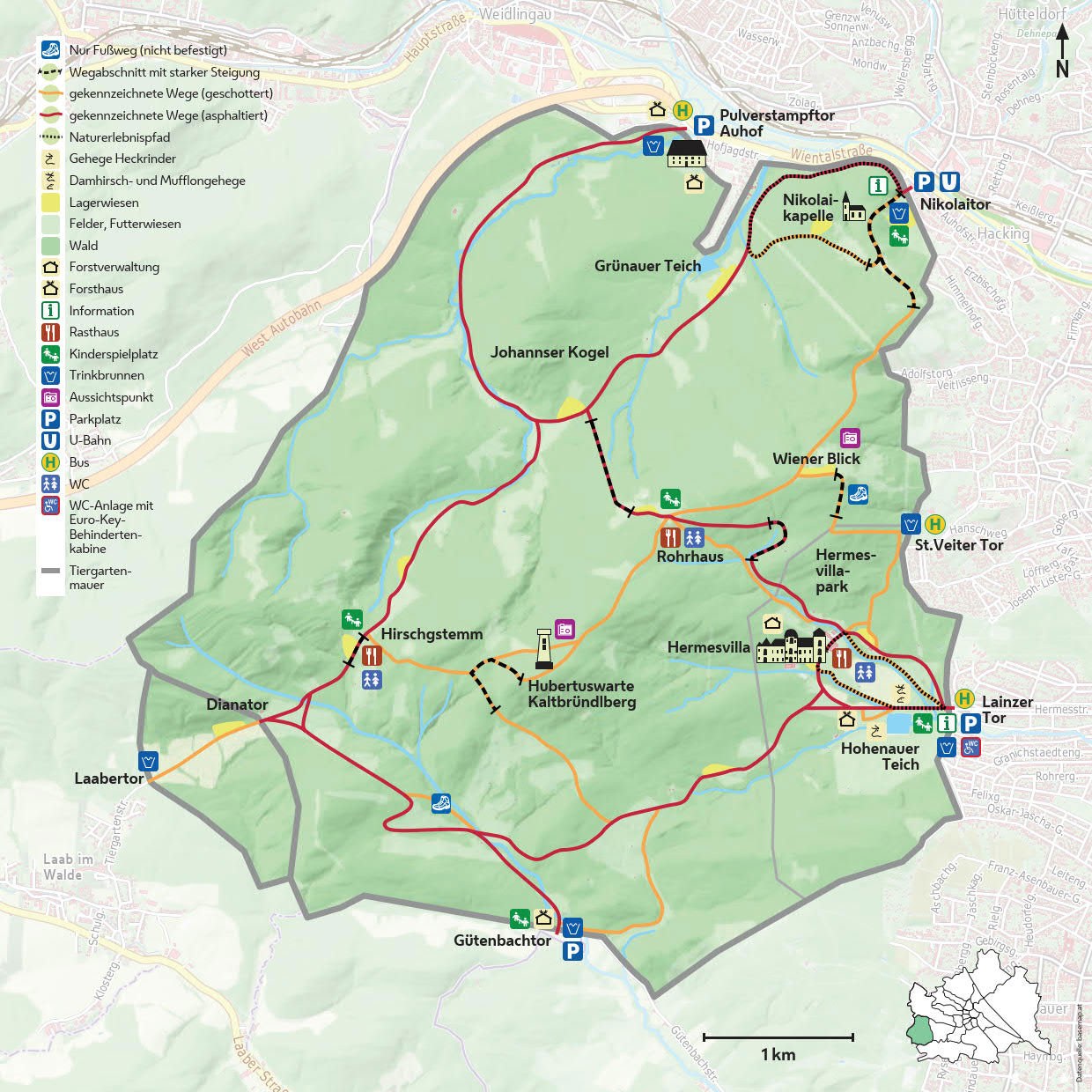 - Es gibt im Lainzer Tiergarten keinen Winterdienst. Die Wege werden bei Schnee und Eisglätte nicht geräumt und gestreut. Die Benutzung der Wege erfolgt auf eigene Gefahr.