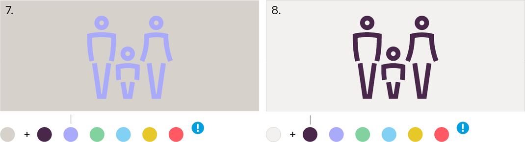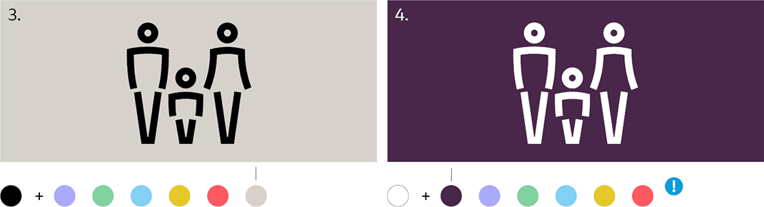Beispiele verschiedener Farbkombinationen für die Anwendung der Piktogramme.