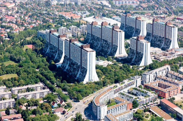 Aufgrund der veränderten geopolitischen Lage hatte Wien in der Nachkriegszeit nicht den gleichen Entwicklungsdruck wie andere europäische Metropolen, in denen in großem Umfang dezentrale Trabantenstädte entstanden, die den funktionalistischen Planungsleitbildern der Moderne entsprachen. Als eines der bis heute prägenden Wiener Musterbeispiele gilt etwa die Großfeldsiedlung im 21. Bezirk, die zwischen 1966 und 1973 als kommunales Großwohnbauprojekt für über 20.000 Einwohner realisiert wurde und die bis zu 17-geschossige Wohnbauten mit entsprechendem Abstandsgrün aufweist.