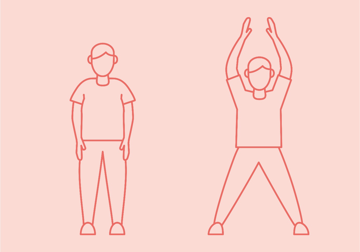 Her iki ayağınız da yere sağlam basacak şekilde durun. Ayaklar omuz genişliğinden biraz daha açık olmalıdır. Dik durun. Kollarınızı vücudun her iki tarafından aşağıya sarkıtın. Nefes alın. Şimdi her iki kolunuzu da başınızın üstüne getirin. Bacaklarınızı açarak zıplayıp, nefes verin. Daha sonra ellerinizi tekrar indirin ve zıplarken ayaklarınızı tekrar bir araya getirin.