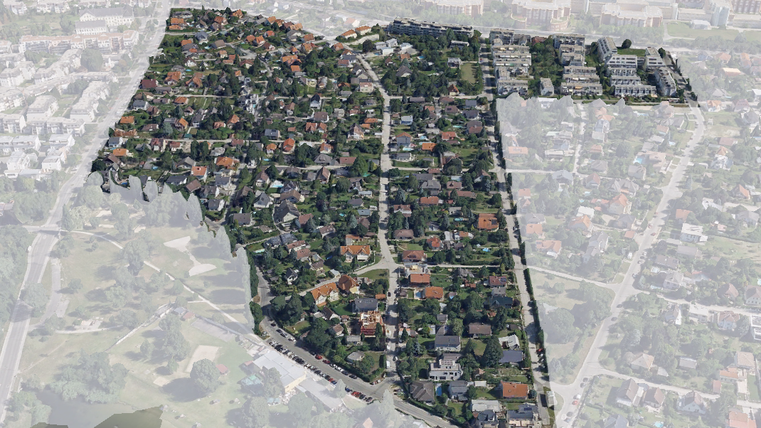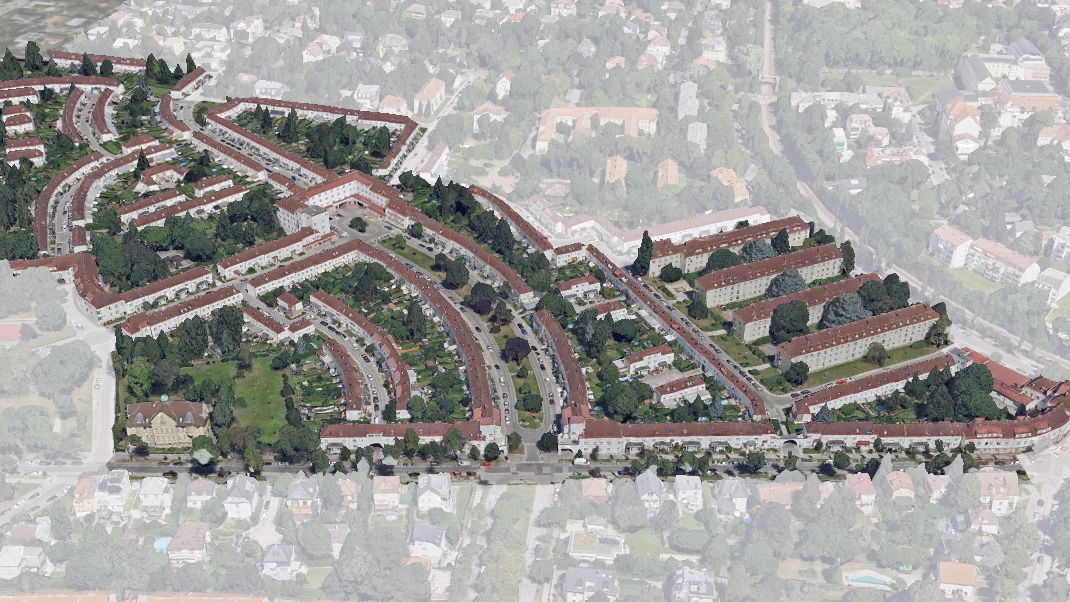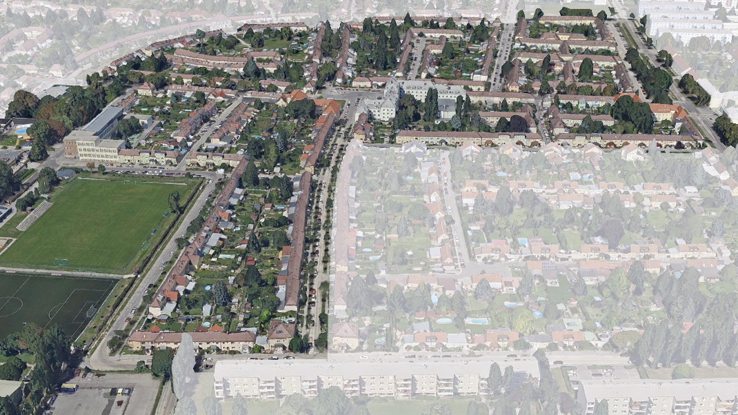 Die gedrängte jedoch niedrig-geschoßige Bebauung stammt gänzlich aus der Bauperiode 1919-1944 und wurde durch die Idee der englischen, von Straßenbegleitgrün geprägter „Gartenstadt“ beeinflusst. Die Gartenzeilen sind ehemalige, zumeist in den Hofbereichen der Wohnhausanlage situierte Nutzgärten. Die Einwohnerdichte beträgt 110 EW/ha, es wohnen hier 0,2% der Wiener Bevölkerung auf 0,4% der Wohnmischgebietsfläche.