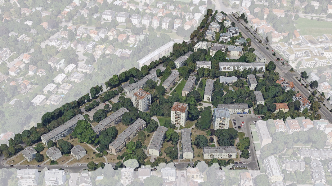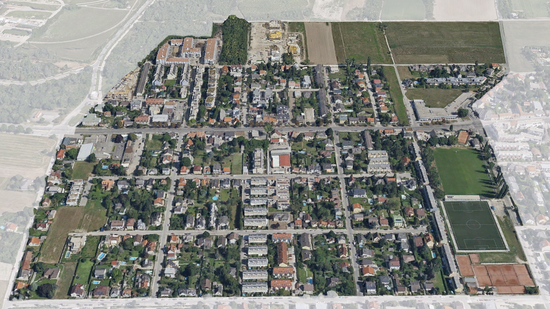Es handelt sich um locker bebaute Areale, charakterisiert durch viele freistehende, mit Grünräumen umgebene Geschoßwohnbauten größer Bauhöhe bzw. Kubatur in Zeilen- oder Punktform. Es dominieren Wohnhausanlagen der Stadt/Gemeindebauten, v.a. aus den 1950ern und 1960ern sowie teilweise aus den 1970ern. Weiters bestehen Mischkulanzen aus diversen Bauperioden, von Geschoßwohnbauten diversen Baualters, Cottages, alten Gründerzeittrakten, neueren, singulären Wohnblöcken bis hin zu Einfamilien- oder Reihenhäusern.