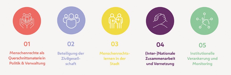 Die Umsetzung der Deklaration „Wien – Stadt der Menschenrechte“ ist die zentrale Aufgabe des Menschenrechtsbüros der Stadt Wien. Die Deklaration sieht fünf Handlungsfelder vor.