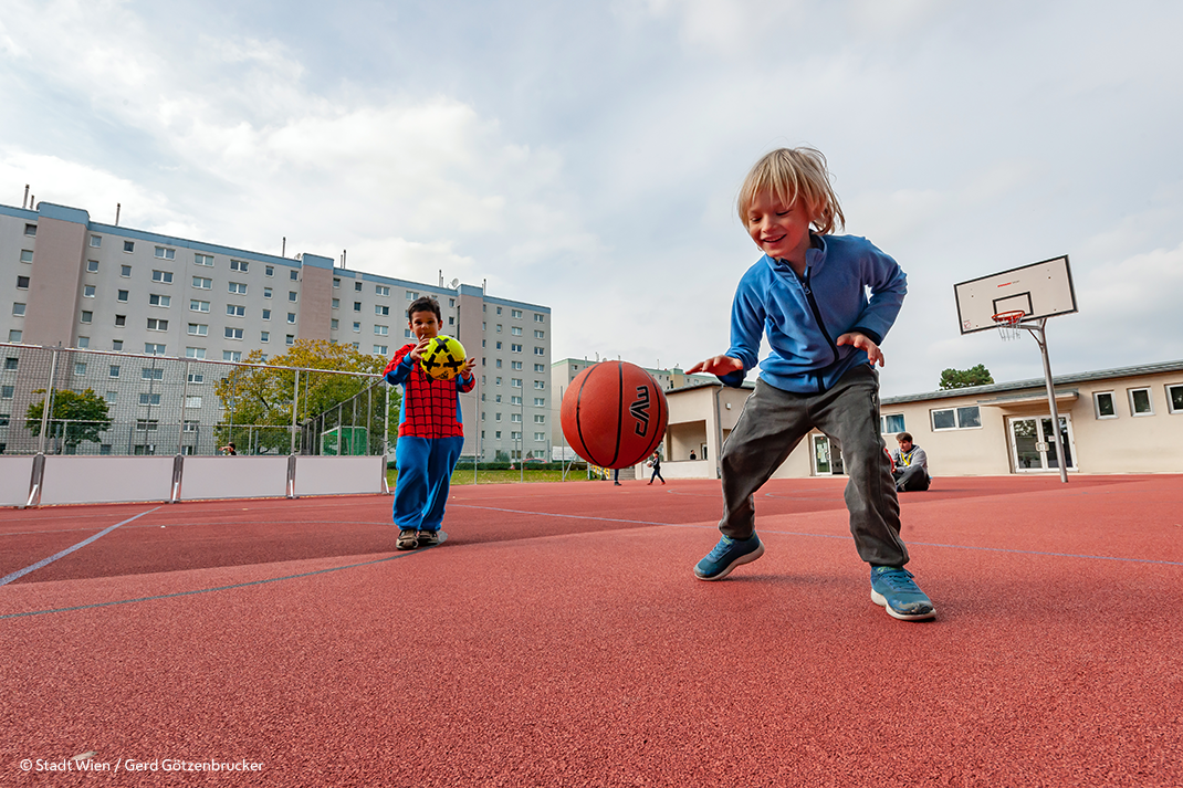 Zusätzlich zur Errichtung von neuen Parks und Sportanlagen macht die Stadt Wien bestehende (Frei-)Räume für zusätzliche Nutzungen zugänglich. Organisierte Mehrfachnutzung ermöglicht zum Beispiel, dass Jugendliche am Sportplatz einer Schule auch nach Schulschluss, an den Wochenenden und in den Ferien spielen. Oder, dass Familien die Freiflächen der Freibäder auch außerhalb der Saison nutzen können. Mehrfachnutzung reduziert den Flächenverbrauch und maximiert die Nutzungsdauer bzw. Auslastung vorhandener Anlagen, stärkt den Gemeinschaftssinn und schafft zusätzliche Bewegungsmöglichkeiten, ohne neue Flächen zu versiegeln.