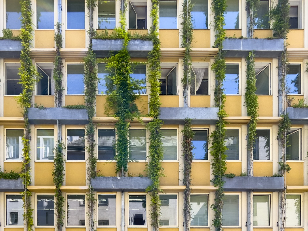 Auch das Begrünen der Fassade kann sehr gut als Sonnenschutz eingesetzt werden. Die Pflanzen beschatten die Fenster. Außerdem geben sie Feuchtigkeit ab, wodurch die Luft ein wenig gekühlt wird (Verdunstungskühlung). Die Stadt Wien fördert straßenseitige Fassadenbegrünungen. Mehr Informationen zur Förderung finden Sie hier.