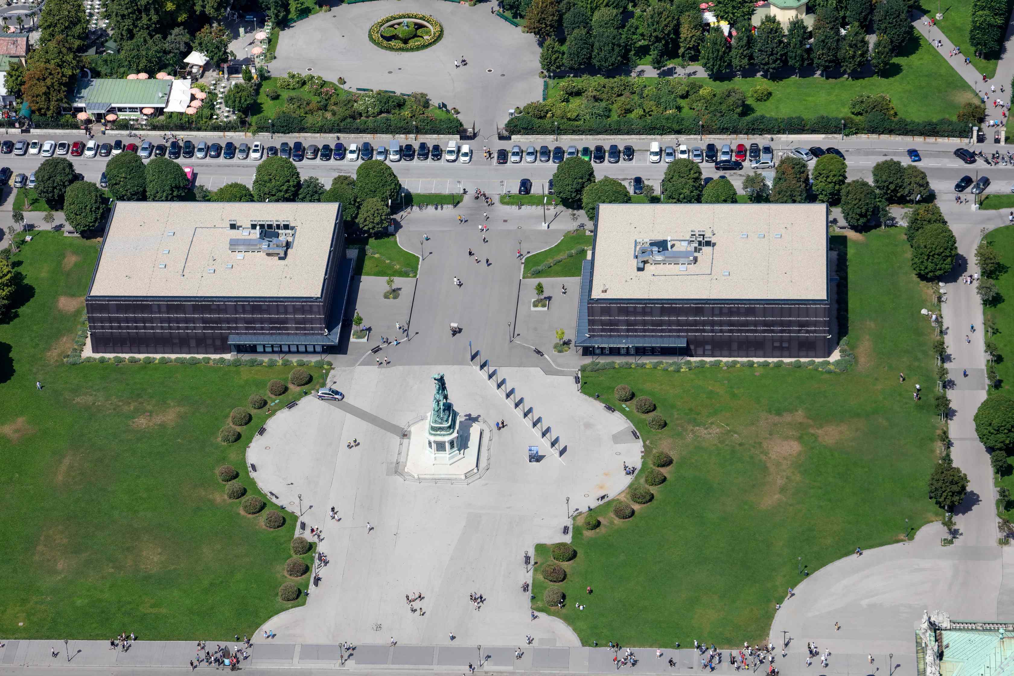 Heldenplatz, Reiterstandbild Erzherzog Karl, provisorisches Parlamentsgebäude (Architekt: Lukas Lang)