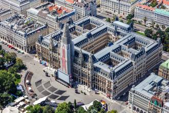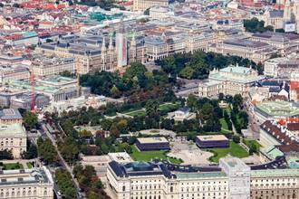 Heldenplatz, Reiterstandbild Erzherzog Karl, provisorisches Parlamentsgebäude (Architekt: Lukas Lang)