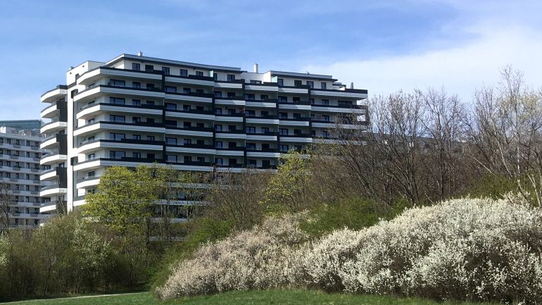 Rund um eine Grünfläche formiert sich ein lebendiges Wohnquartier, das sich konzeptionell und formalästhetisch am Gemeindebau anlehnt. Hier entstanden 450 Wohnungen aus der Feder von AllesWirdGut und feld72, deren kooperative Planung besonderes Augenmerk auf die Potenziale des Standorts legt - auf Ausblick und Grünraum.
