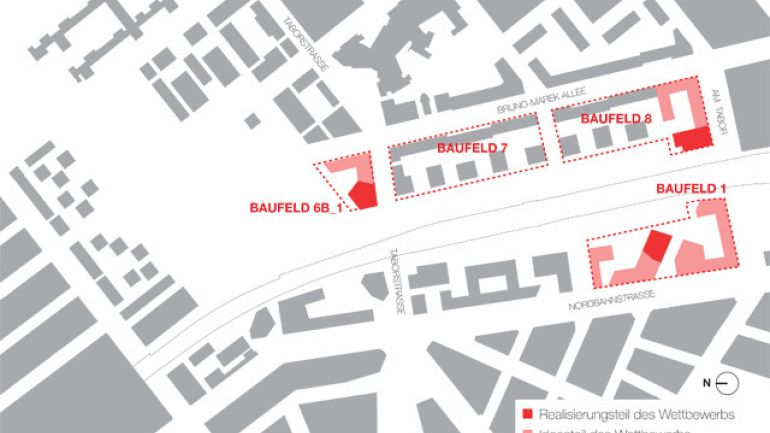 Auslober der Wettbewerbe waren die jeweiligen Bauträger auf den künftigen Bauplätzen: Sozialbau, ÖVW, KIBB-Immobilien und EGW-Heimstätte.