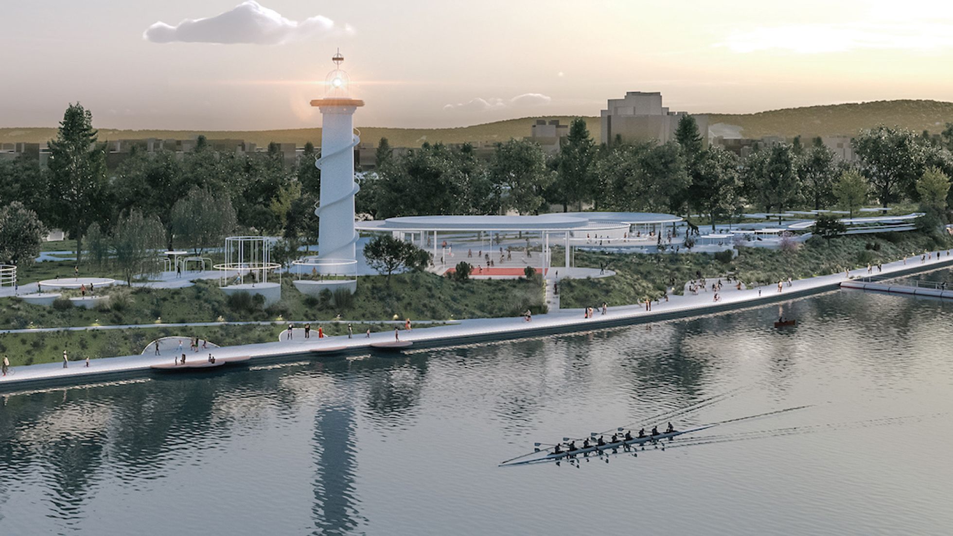 Urbane Freizeitoase mit konsumfreien Zonen, Badeplattformen und viel Grün