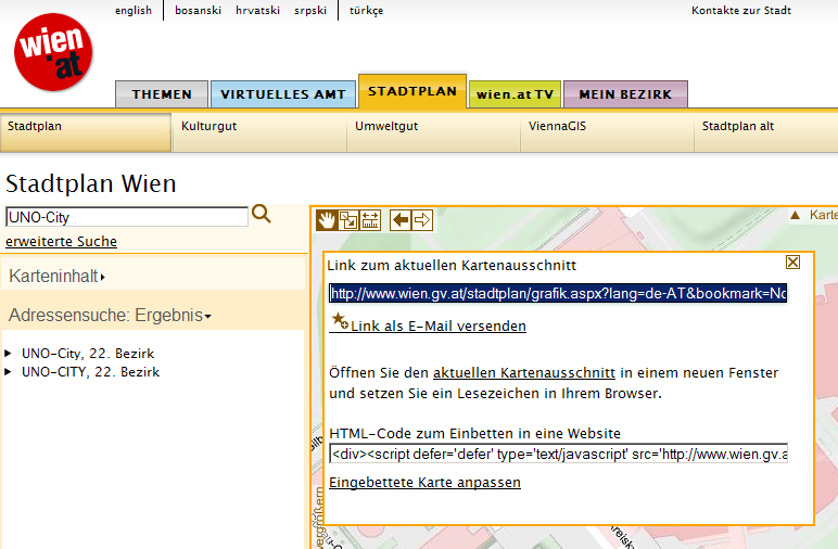 Neben der Möglichkeit, einen Ausschnitt des Stadtplans direkt auf einer Webseite einzubinden, können natürlich auch sehr leicht Links auf spezifische Inhalte des Stadtplans gesetzt werden.