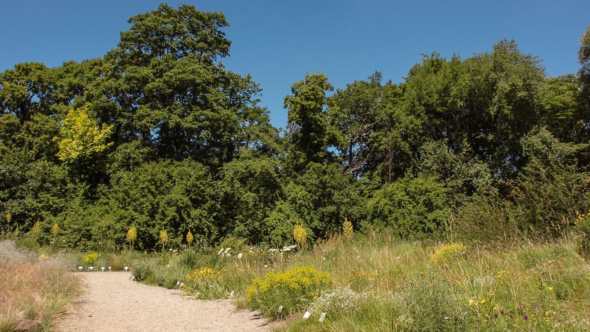 Im Workshop untersuchen die Schüler*innen die Pflanzen der verschiedenen Lebensräume wie Acker, Brache, Trockenrasen oder Gebirge, die im Botanischen Garten nachgebildet sind.