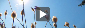 3 große Ostereier aus Metalldraht in einer Wiese, davor ein Blumenbeet