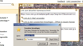 Sie können auf sehr einfache Weise einen Link auf einen bestimmten Stadtplanausschnitt erstellen. Diesen Link können Sie verwenden, um auf einer Webseite darauf zu verweisen, Sie können den Link auch als Lesezeichen in Ihrem Browser abspeichern oder ihn per E-Mail weiterschicken.